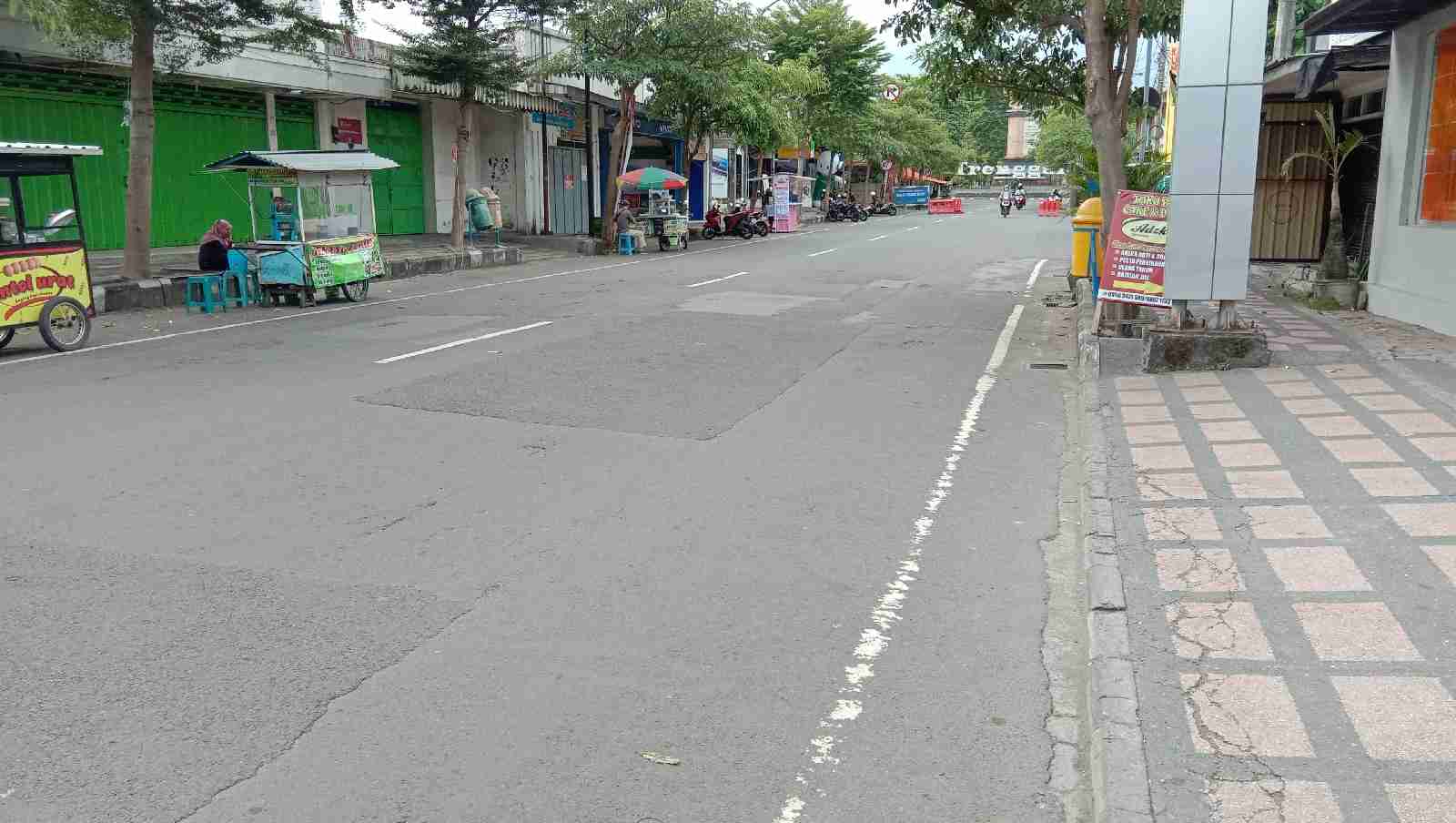 Jalanan tampak lenggan di jam-jam yang biasanya terjadi kepadatan. Meskipun, kendaraan masih diizinkan masuk, terutama kendaraan yang berkaitan dengan sektor esensial dan kritikal.