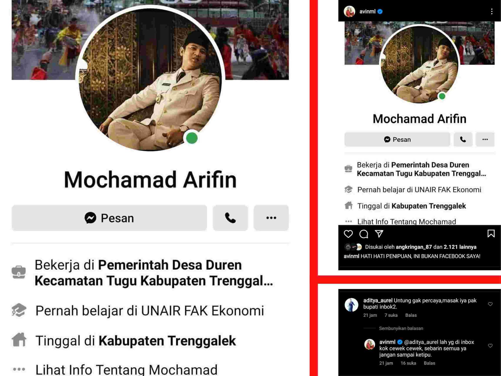 Namun berbeda dengan ungkapan akun instagram atas nama @naya_choirunissa, naya yang mengatakan bahwa ada tetangganya yang diduga pernah ketipu akun facebook palsu yang mengatas namakan Bupati Trenggalek.