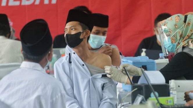 "Total di MTsN sebanyak 1.444 dosis, sedangkan untuk Ponpes Qommarul Hidayah sebanyak 600 dosis. Jadi sasaran kita sementara ini madrasah dan pondok pesantren. Karena kedepan kalau sudah waktunya ada kebijakan untuk melaksanakan sekolah offline, mereka sudah tervaksin." ujar Rudy.